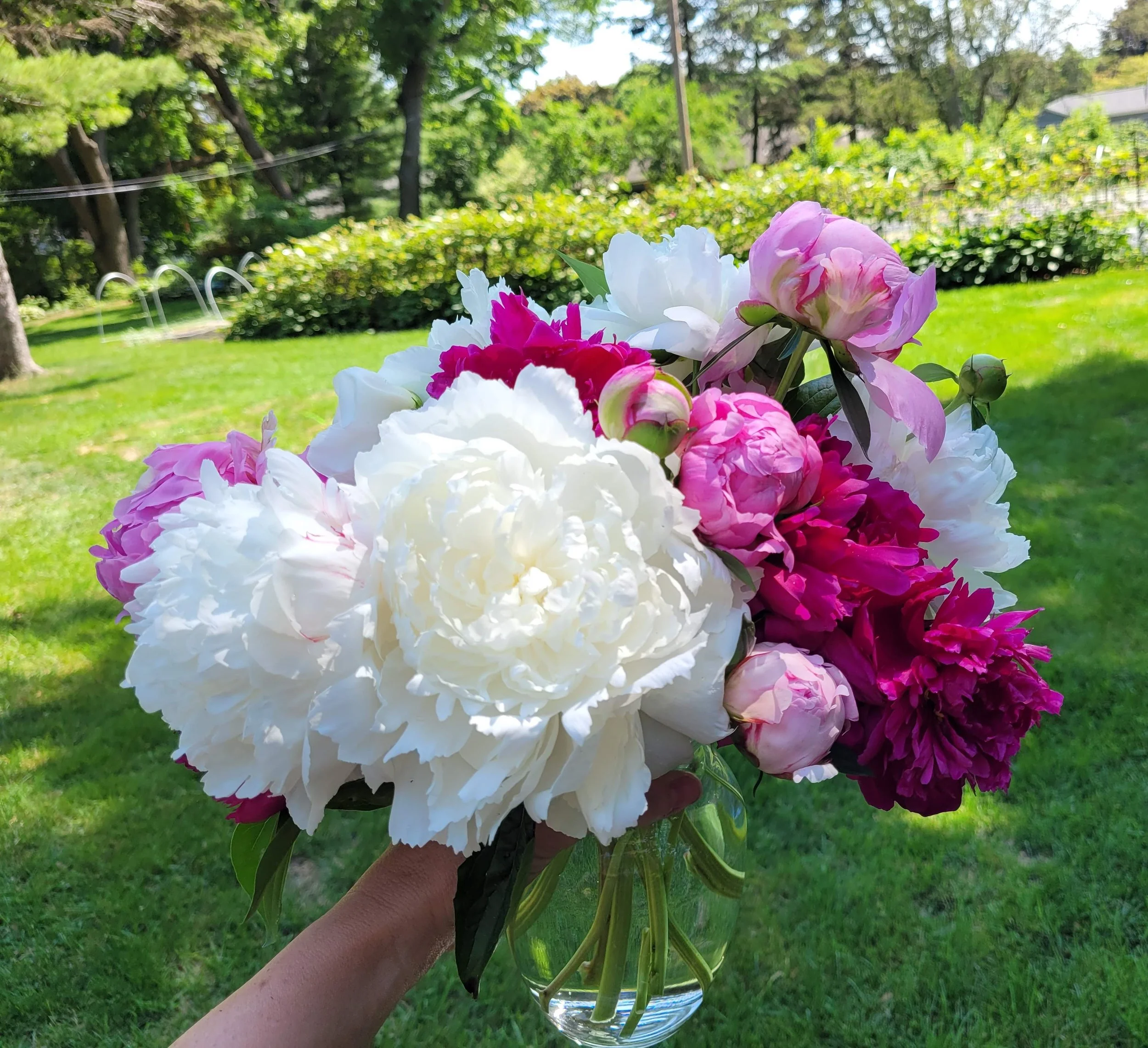 My flowers are cut twice a week from my garden to make sure they are always producing fresh, new blooms that last so much longer than the ones shipped from out of state or the country. They are not sprayed with pesticides or herbicides and help support our local wildlife population by attracting many bees, hummingbirds, rabbits, and many other small critters who sustain the owls that live high up in our pine trees.